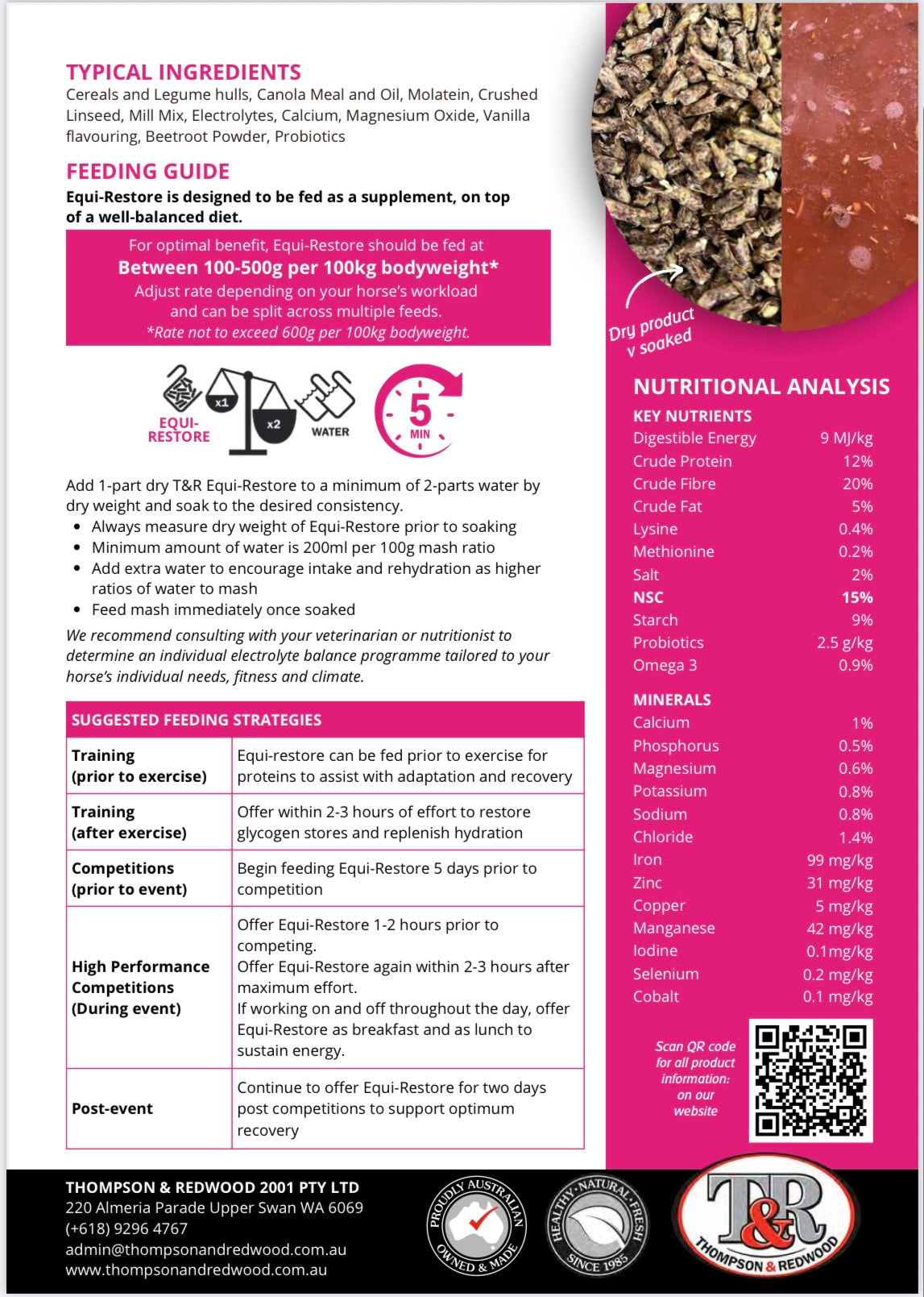 EQUI-RESTORE is a highly palatable pink mash that promotes rehydration, recovery and gut health.